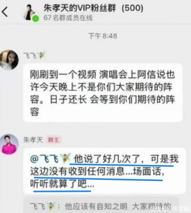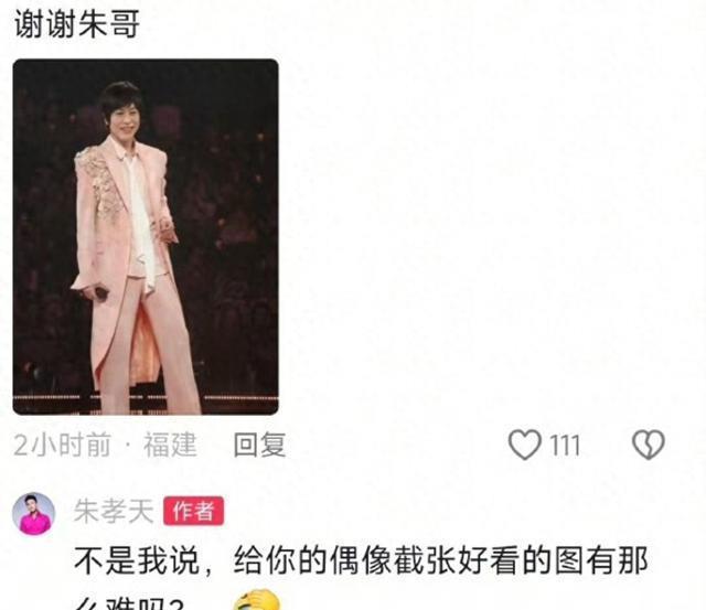 想不到朱孝天根本不领情,在粉丝群里直言不领情:场面话听听就算了吧。