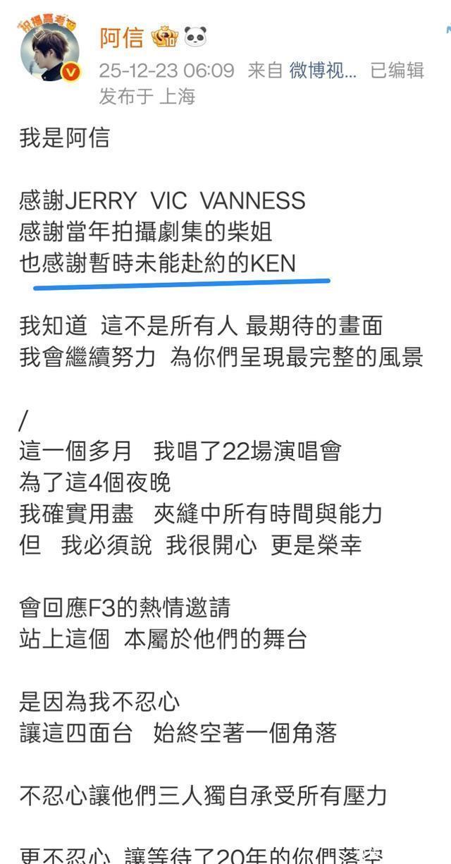 又有上海场结束后,阿信例行公事感谢了朱孝天。